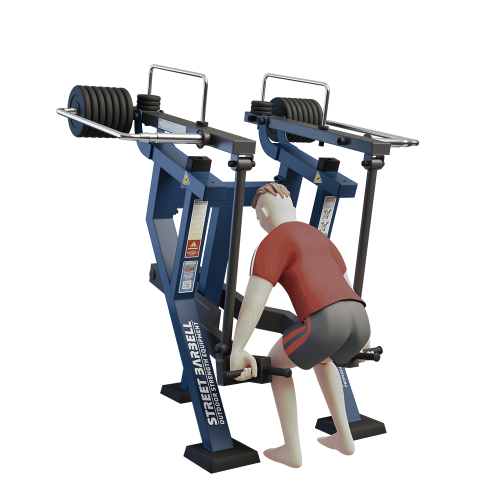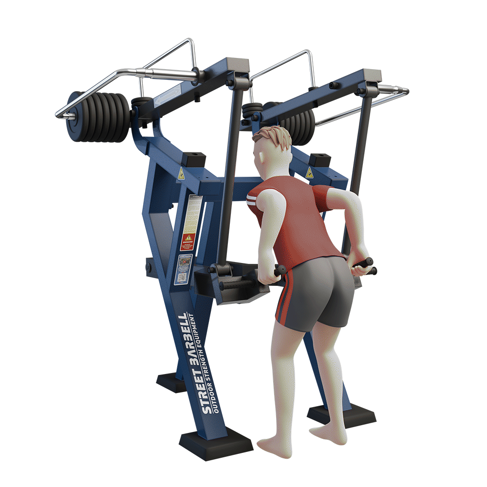 The exercise machine is designed for training the back muscles, particularly the posterior deltoid muscles