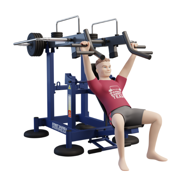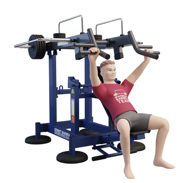 The incline bench press machine is designed for training the chest and deltoid muscles