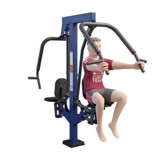 The equipment is designed for training chest muscles and deltoid muscles, depending on the grip. Two people can use it simultaneously.