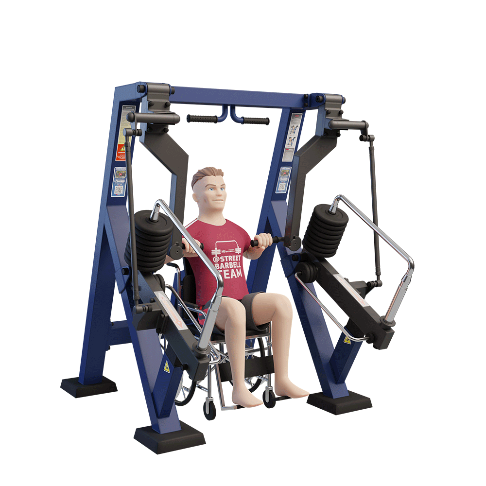 Load The trainer is designed for training the chest muscles. The design of the trainer allows individuals in wheelchairs to use it.